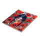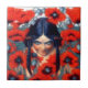 Mulher de cabelos escuros fatal com tranças e olhos verdes malévolos e perfurantes, escondidos num campo de flores vermelhas brilhantes. Linda Ilustração intitulada "La Destruction", para os "Les Fleurs du Mal" (Flores de Mau) de Baudelaire, por pintor simbolista alemão Carlos Schwabe (1900).