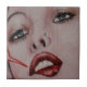 Grafite que representa a face de uma jovem com lábios vermelhos brilhantes
