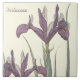 A íris da lavanda do vintage floresce com beira do laço do verde prudente e da lavanda em um fundo fora branco.