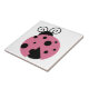 Uma joia cor-de-rosa branca com manchas pretas e antenas encaracoladas. Personalizar alterando a cor de fundo.