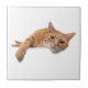 Retrato de uma taça laranja de taça doméstica de gato deitado sobre um fundo branco com pata cortada sobre uma mesa