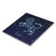 Azulejo com o símbolo zodíaco de Leo em azul-prata suave, sobreposto com as estrelas da constelação, contra um fundo do céu estrelado formando de azul-da-meia-noite a preto.