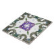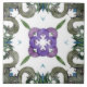 Um design arabesco em verde, azul e roxo no estilo de azulejos azulejo espanhóis.