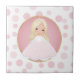 Esta design apresenta uma princesa loira cabeleira com vestido rosa, coroa e luvas sobre um fundo rosa-belo.