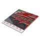 Uma fotografia invulgar dos icônicos ônibus vermelhos de Londres numa linha impressa num azulejo cerâmico de souvenir.