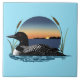 Um leão em um lago com um pôr do sol e se catapultará em um pano de fundo azul