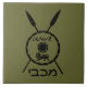 Uma representação "subjugada" militar negra do escudo de um Macabcabee e de duas lanças. O escudo é enfeitado por um leão e o texto lendo "Yisrael" (Israel) no alfabeto paleohebraico. O texto hebraico que lê "Maccabee" também aparece. Os Macabeus eram rebeldes judeus que libertaram Judeia do jugo do Império Seleúcio. Chanukkah não é apenas um festival de inverno-médio com velas e iguarias fritas, ela celebra uma vitória militar, e garante a liberdade religiosa, sobre o Império Seleúcio. Além disso, a revolta foi uma guerra civil envolvendo aqueles judeus que eram leais ao G-d e aqueles que tinham adotado o Hellenismo dos Seleucids.