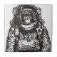 Este design apresenta um retrato de um chimpanzé em uma roupa de astronauta.