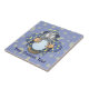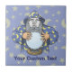 O velho feiticeiro com capa azul e bola mágica de cristal. Use a foto facial para personalizar. Texto personalizado.