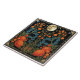 Marigóides com folhas azuis e lua de cheio sobre fundo preto estrelado, composição simétrica, quadro de ouro, detalhado, intrincado, cenário mágico.