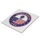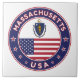 Crachá de Massachusetts com bandeira de Massachusetts e bandeira dos EUA, cores, forma arredondada. Emblema de Massachusetts. Selo de Massachusetts. Coleção dos Estados Unidos.
