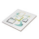 Adicione essa mistura de diversão e cor à sua cozinha ou banheiro com este fabuloso azulejo de cerâmica meio século atômico. Este design apresenta quadrados abstrato, estereótipos e um bumerangue nas cores do verde abacate, azul-aqua, amarelo e preto... tão engraçado!