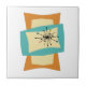Este azulejo de cerâmica moderna funky apresenta formas retangulares espremidas e esticadas nas cores azul turquesa, creme e laranja. O Starburst acentua em rosa, azul, ouro e preto o design. Adicione esse sotaque retrô funky ao seu projeto de tiling!