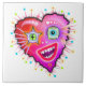 MEU CORAÇÃO VAI SE ESPANTAR EM Um estilo de arte contemporânea sorridente, emoji, como um rosto emocional vermelho em forma de coração, nas cores brilhantes e coloridas do Namorados vermelho, pinks, magentas e roxas acentuadas com outras cores complementares.