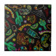 Arte de Linha Alegre e Colorida México Padrão Fiesta, composto por Elementos Típicos como crânios de açúcar, maracas, inca guerreiro, aztec guerreiro, pimenta-do-pirilo, cacto, pirâmide, limão, tequila, sombrero, tacos, camaleão, e alguns elementos florais étnicos e decorativos. Arte vetorial original Copyright BluedarkArt.