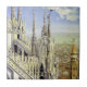 Imagem de encerramento de um poster de viagens italiano vintage para Milano, mostrando a linha de telhado gótica da Catedral de Milão.