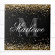 azulejo cerâmico Glitter Dourado preto e branco Monograma com um nome de script de caligrafia personalizável e modelo de monograma em negrito.