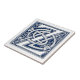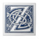 Uma bela e decorativa letra celta emboscada iluminada com cabeças de dragão de cinza sobre um fundo azul escuro e veludo.