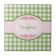 Azulejo De Cerâmica Monograma verde feminino do guingão com nome