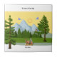 Vista de montanha com a família de veados e aves da floresta. Texto para personalização.