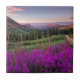 Esta foto caracteriza wildflowers avermelhado-roxos do fireweed em um ajuste da montanha no nascer do sol.