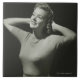 Jovem mulher com mãos atrás da cabeça no estúdio, (B&W), marcas do fim-acima | George | AssetID: 57539441