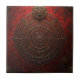 An ornate compass rose glows in gold against a deep crimson backdrop, surrounded by arcane symbols and cryptic inscriptions.