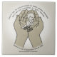 Little Boy é visto sentado em um par de mãos grandes, mãos de Deus, colocando um par de calçados que são grandes demais para seus pés. A citação de David A. Carrizales, ilustrada aqui por Christie Black, é "Não tente colocar-se nos seus calçados, em vez disso, vamos todos colocar-nos nas mãos de Deus".