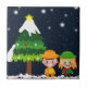 NATAL NOITE COM CRIANÇAS POR ÁRVORE DECORADA COM NEVE E ESTRELAS