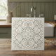This Mediterranean tile design features an elegant arrangement of swirling scrollwork and stylized floral motifs in soft, sun-washed neutrals. The palette blends warm sandstone beige with muted olive-gray linework on a textured ivory background, creating a gently weathered, hand-crafted look. Its harmonious symmetry and classic Mediterranean character make it ideal for adding subtle sophistication to coastal, rustic, or Old World-inspired interiors. Search ID1195 to see other products in this unique design set. Note: design may contain generative content