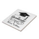 Personalizou esse azulejo de graduação com nome e ano do formando. Design apresenta um boné de formatura preto com texto preto e um florescimento decorativo.