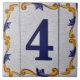 Uma cópia de um azulejo de porcelana para o número quatro. Completado com a idade relacionada a fissuras no vidro.