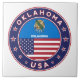 Crachá de Oklahoma com bandeira de Oklahoma e bandeira dos EUA cores, forma arredondada. Emblema de Oklahoma. Selo de Oklahoma. Coleção dos Estados Unidos.