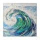 trabalho de arte de aquarela tradicional de uma onda oceânica azul e turquesa colorida algures no oceano azul sobre um azulejo cerâmico.