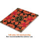 Esse azulejo cerâmico é uma bela mistura de estética tradicional e de elementos design contemporâneos. A cor de base é uma cor de laranja quente e convidativa, que serve de pano de fundo para um padrão intrincado renderizado em tons negros e vermelhos. No centro do azulejo está um motivo floral simétrico, cercado por um conjunto de formas que ecoam elementos de designs clássicos de mandala. Cada detalhe é meticulosamente trabalhado, contribuindo para um espetáculo visual que é harmonioso e dinâmico.