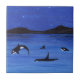 Uma pintura acrílica de uma cápsula de orca sob um céu estrelado e à noite.