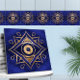 Azulejo De Cerâmica Ornamento Ocular Dourado e Azul Marble