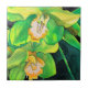 A partir de uma pintura original em aquarela de Sacha Grossel de flores de orquídea verdes e amarelas em estilo botânico pintado. Esta obra de arte original do estilo pop floral especial é vibrante e colorida. Verde limão e amarelo-limão num fundo verde-escuro texturizado.