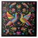 Brilhe sua casa com este Azulejo de cerâmica decorativa mexicano "Um dos tipos"! Ele apresenta um Impressão de Otomi mexicano com Pássaros e Flores em cores brilhantes...num fundo negro!