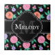Na moda, padrão floral constituído por rosas de cor de água cor rosa, coral e abstrato púrpura em fundo preto. O produto inclui um modelo personalizável para o seu monograma e nome. Um presente personalizado fofo para meninas que amam designs monogramas.