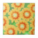 Um design com grandes cabeças de laranja, com folhas e caules verdes brilhantes.