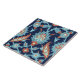 Este é um padrão floral azul colorido, ciano, branco e laranja do terracota, oriental turco, sobre um fundo azul marinho.