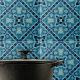 Azulejo De Cerâmica Padrão Geométrico Complexo de Azul e Indigo