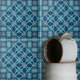 Esse azulejo cerâmico apresenta um padrão intrincado e simétrico que irradia do centro, criando um efeito caleidoscópico. O design é complexo e meticulosamente trabalhado, com formas que se entrelaçam e se sobrepõem, acrescentando um sentido de profundidade e dimensão. A paleta de cores é dominada por vários tons de azul suave tranquilo e matizes índios mais escuros, que interagem lindamente, evocando a serenidade das profundezas do oceano. A precisão do padrão e a complexidade do design lhe dão um talento contemporâneo, enquanto sua simetria e o uso da cor lembram o tradicional trabalho de arte mosaico.