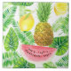 Padrão de aquarela com folhas e frutas tropicais.