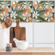 Azulejo De Cerâmica Padrão Tropical Laranja e Flores de Água