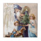 Um azulejo bonito do vintage que caracteriza Papai Noel com um anjo e um cheio do trenó dos brinquedos.
