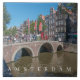 Uma bela vista de pessoas atravessando uma ponte em Amesterdã, nos Países Baixos, impressa num azulejo cerâmico de souvenir.