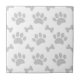 Um padrão feito de patas e ossos de filhotes. Azulejos de cerâmica personalizados em branco e cinza. Design de estilo cartoon. Ideia de presente para amantes de cães.