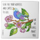 Bonito azulejo decorativo de pássaros e flores pintados, com verso das escrituras de 1 Peter 5:7 "Deem todas as vossas preocupações e preocupações a Deus, porque ele se preocupa contigo."